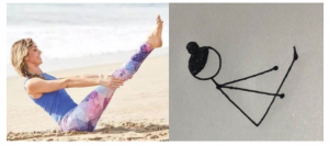 类似地,船式的画法可以通过双手一上一下的视觉感受画出瑜伽小人。船式中双腿并拢,所以不需要画出双腿一前一后的视觉感受。